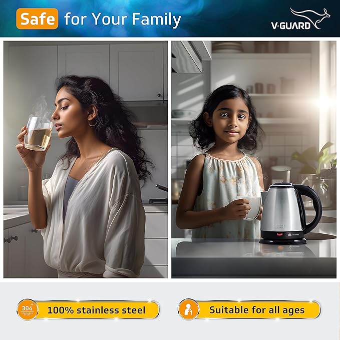 FAST HEATING: 1500W power for super quick heating for upto 2 litres of waterย